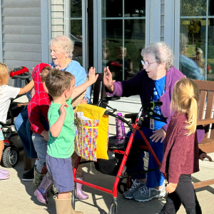 At Hubbard Hill, the belief in the transformative power of generations connecting underpins everything we do. As one of the Midwest’s only senior living campuses designed for daily intergenerational engagement, our nationally recognized programs offer residents – and our youngest visitors – opportunities to learn, play, share, and grow together. Here, children from the Early Learning Center and elders form lasting bonds through storytelling, music, art, gardening, and collaborative learning opportunities. Research has shown that intergenerational activities decrease loneliness and depression in seniors while increasing empathy and social understanding among children, benefits that are apparent every day throughout our campus.